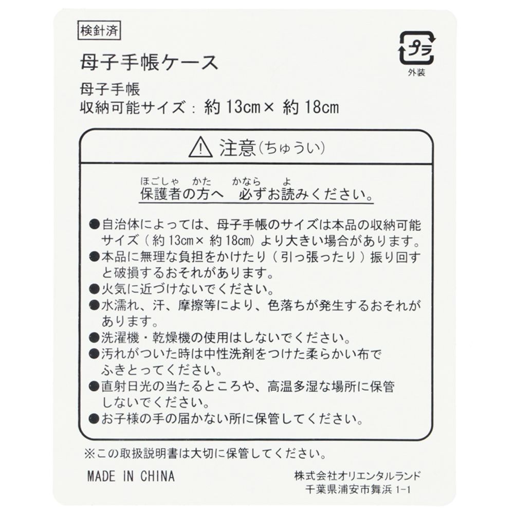 母子手帳収納可能サイズ:縦約13cm:横約18cm