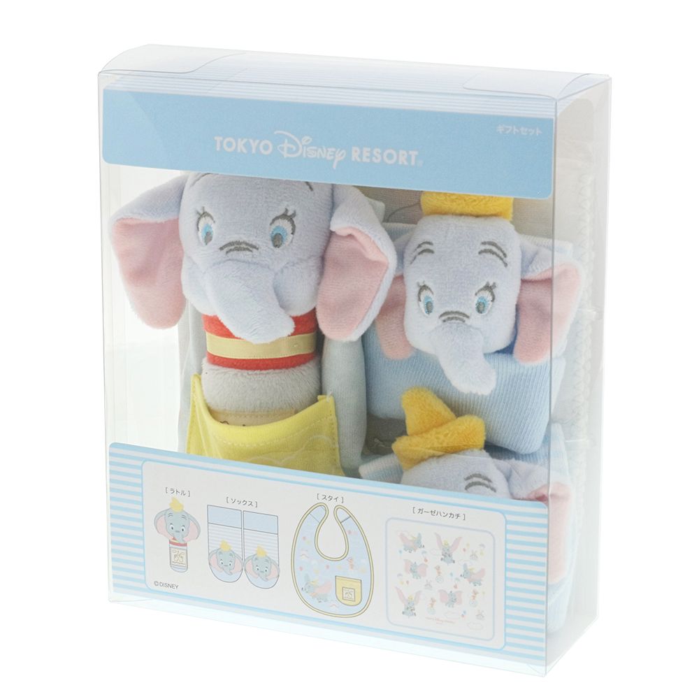 ダンボをモチーフにデザインされた、優しい色合いのベビーギフト。