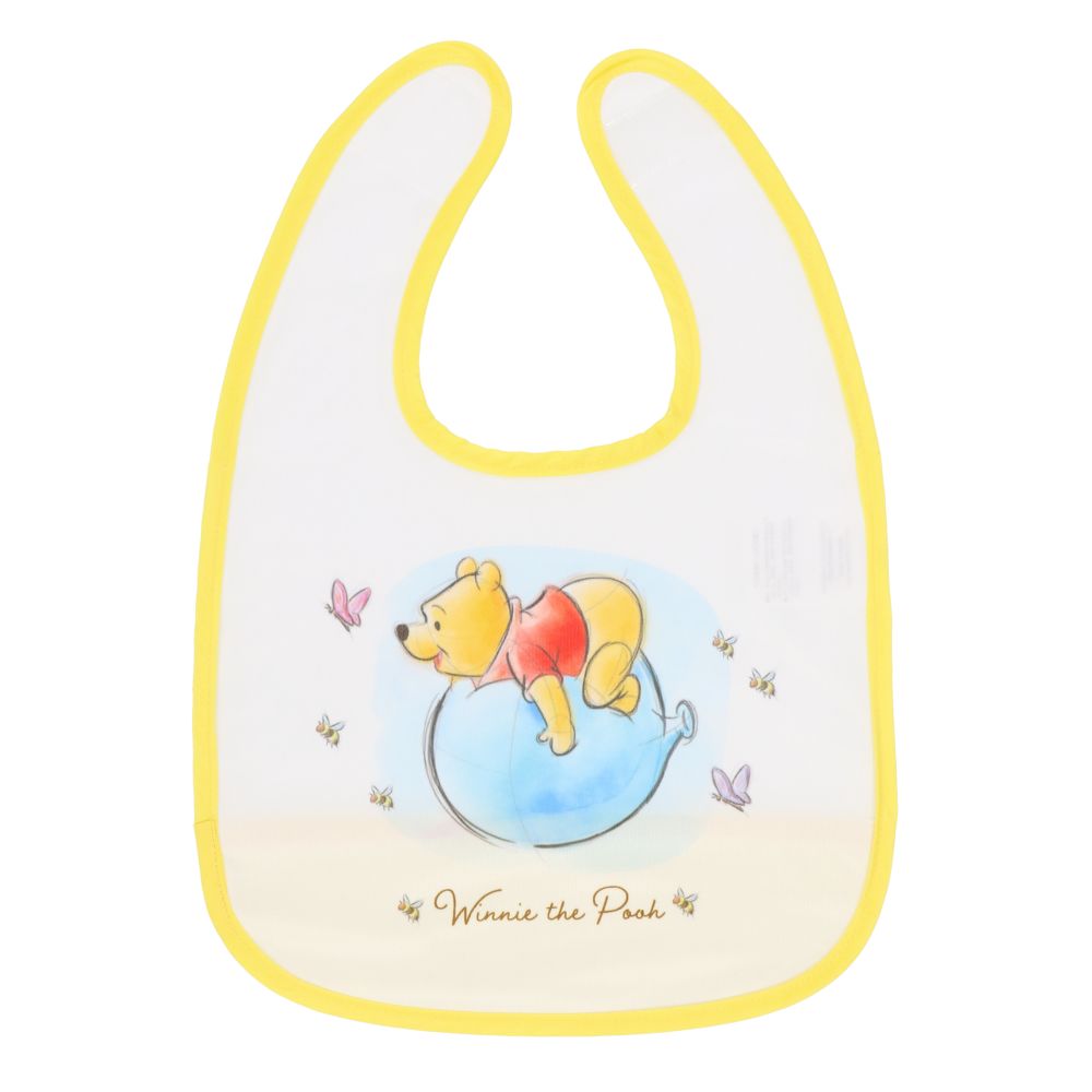 風船に乗っているプーが手描き風に描かれた、愛らしいデザインのベビースタイ。