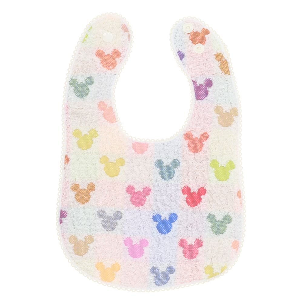 ホワイトをベースとしたふわふわやわらかな生地に、カラフルなミッキーシェイプのデザインが明るい印象。
