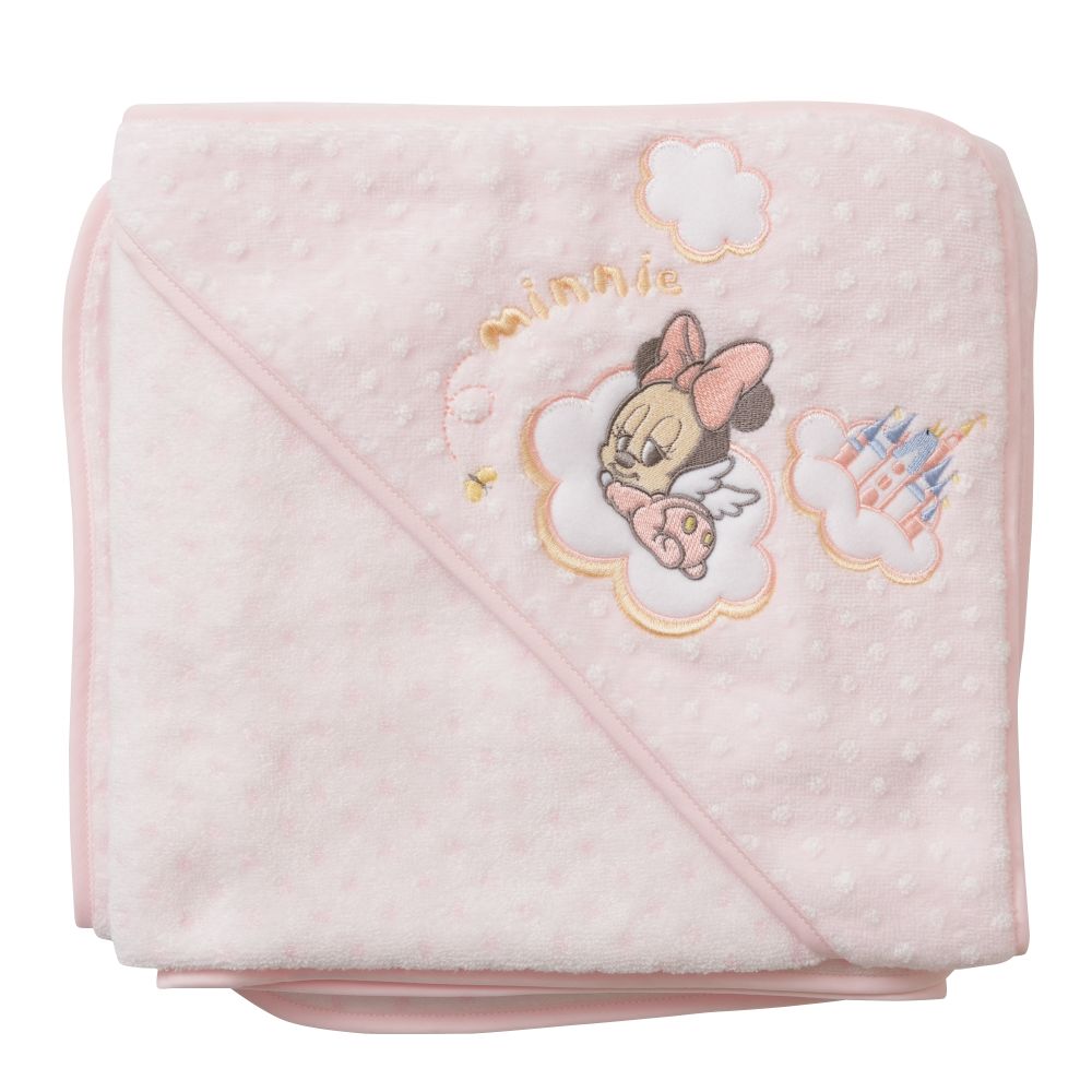 天使のような羽がついたミニーとシンデレラ城が、雲の上に乗っている刺繍がワンポイントでとってもキュート♪肌布団に、おくるみに、ひざかけに、いろいろな使い方ができます。