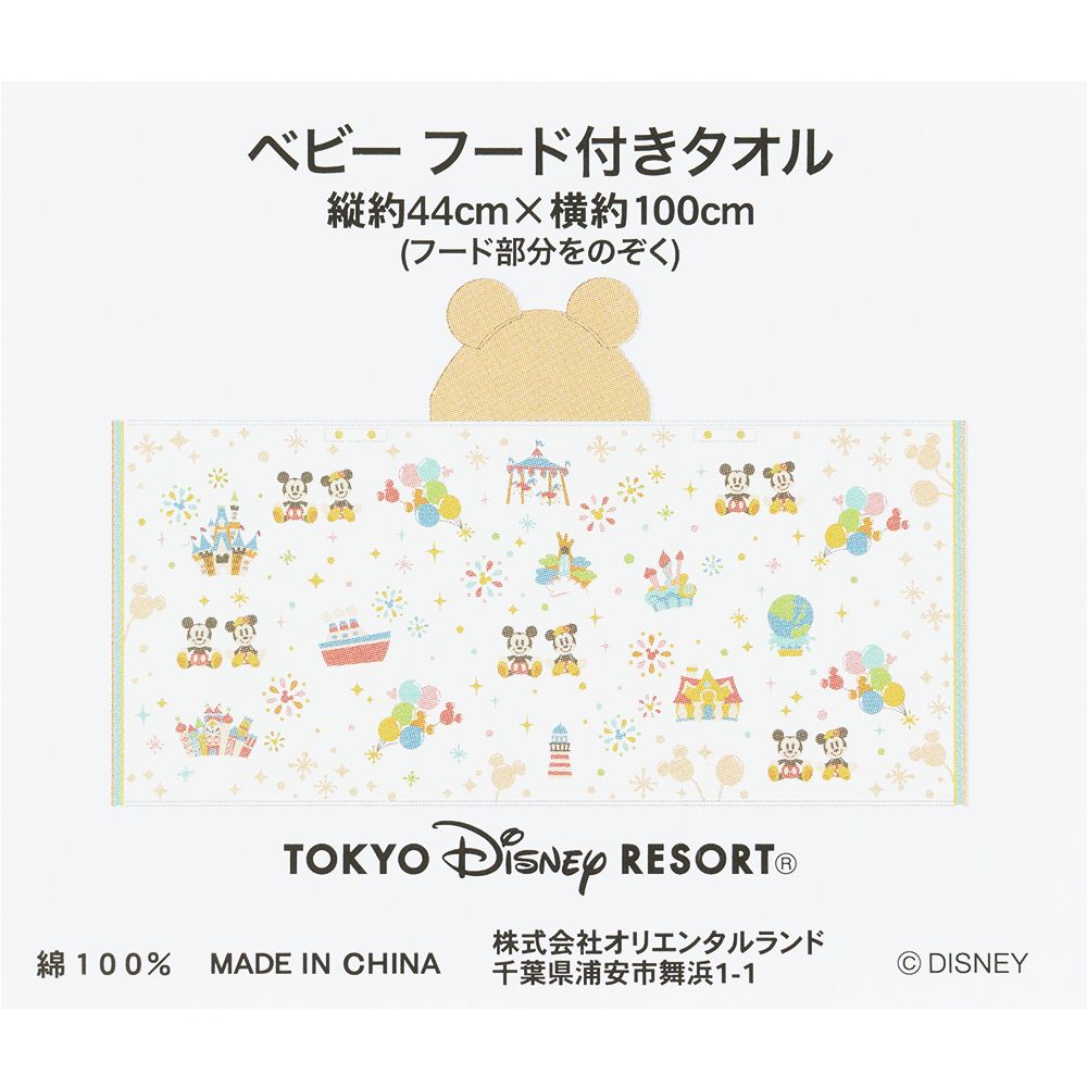 ベビー用のフード付きタオル。