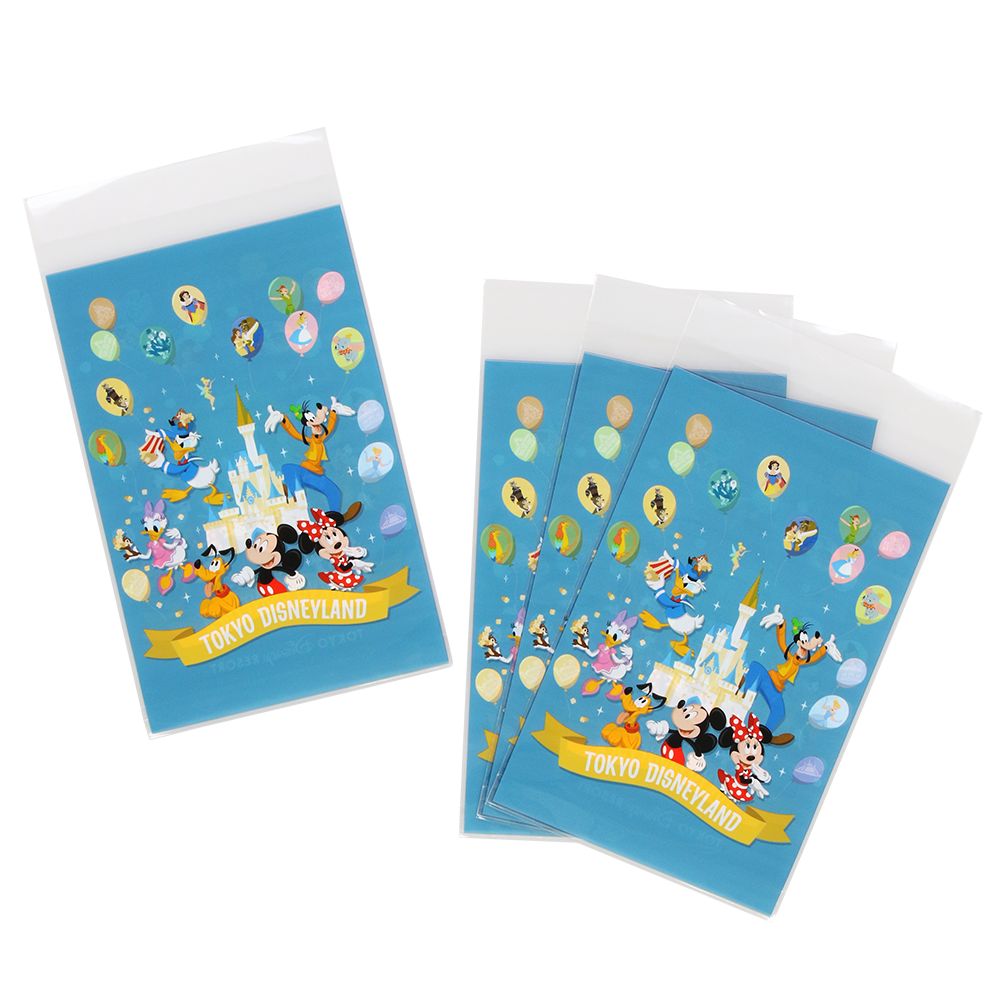 ミッキーマウスと仲間たちや、東京ディズニーリゾートのシンボルであるシンデレラ城とアクアスフィアがデザインされた小分け袋。