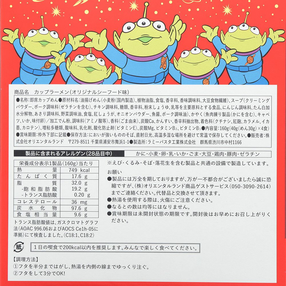 カップラーメンの中にはリトルグリーンメンがデザインされたなるとやグリーンの麺が入っているので、見た目も味も楽しめそうですね♪