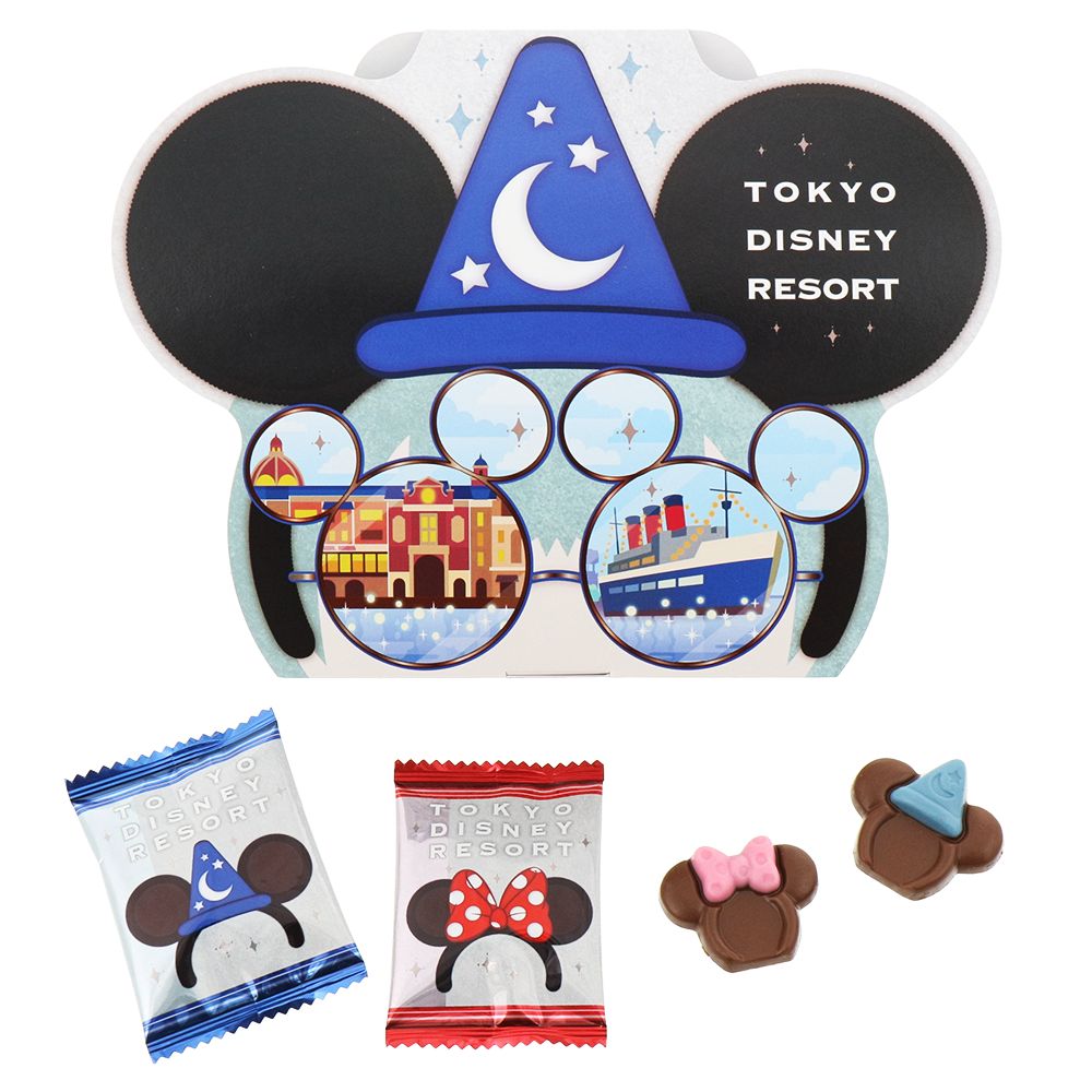 映画『ファンタジア』に登場する、魔法使いの弟子となったミッキーマウスをイメージしたカチューシャと、ミニーのカチューシャが、紙箱と個包装にそれぞれ描かれています。