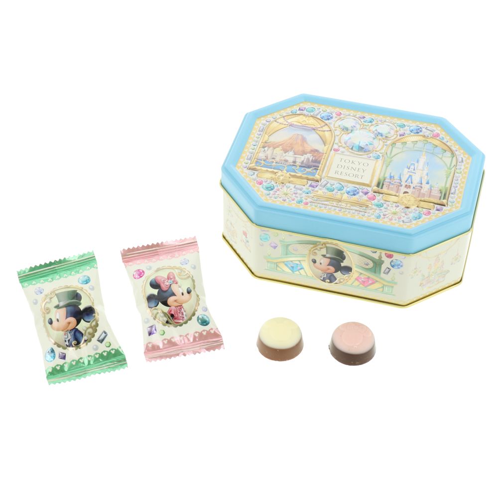 蓋に宝石がデザインされた、きらびやかな印象のチョコレート。