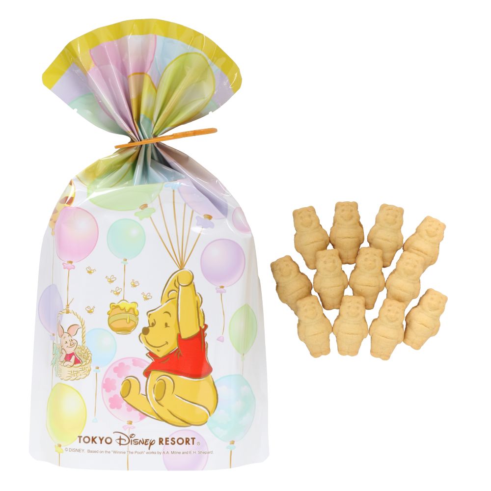 カラフルな風船やプー、ピグレット、はちみつの壺がデザインされたパッケージに入ったクッキーです。