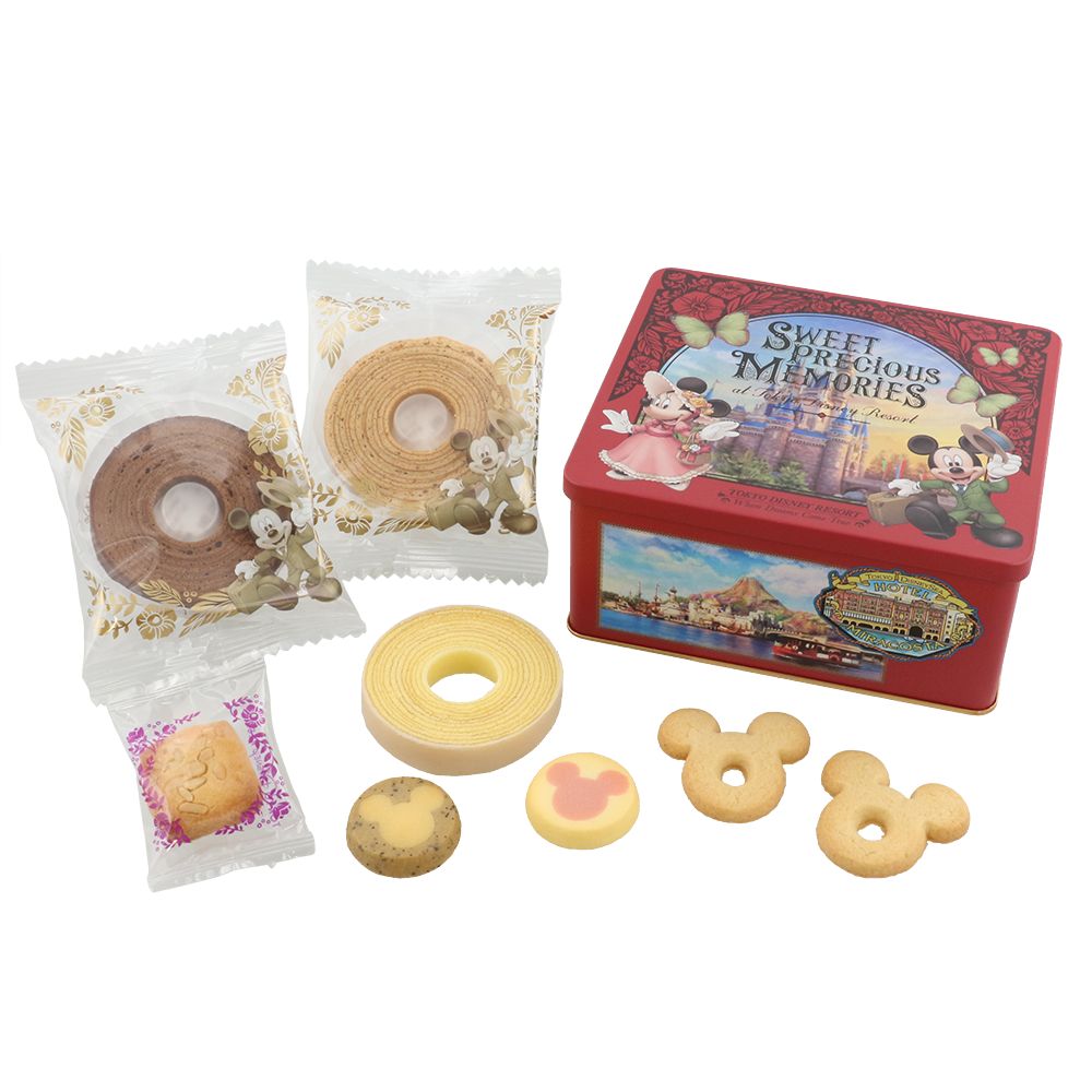 缶にはミッキーたちや東京ディズニーリゾートの風景が描かれており、パークの雰囲気も楽しめるデザインです。