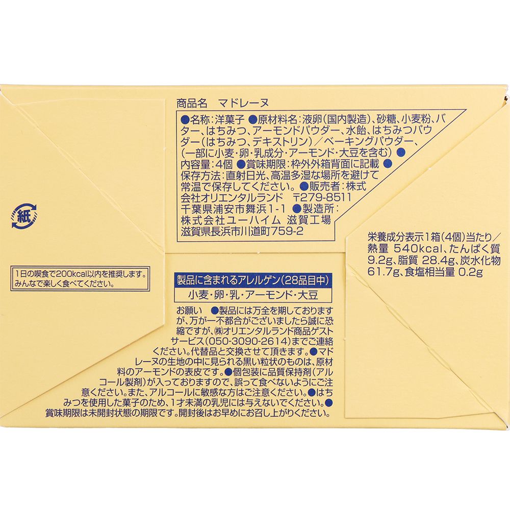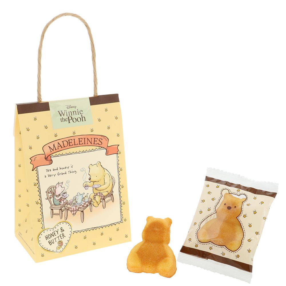 はちがデザインされたキュートな個包装の袋の中には、プーをイメージした形のマドレーヌが4個入っています♪