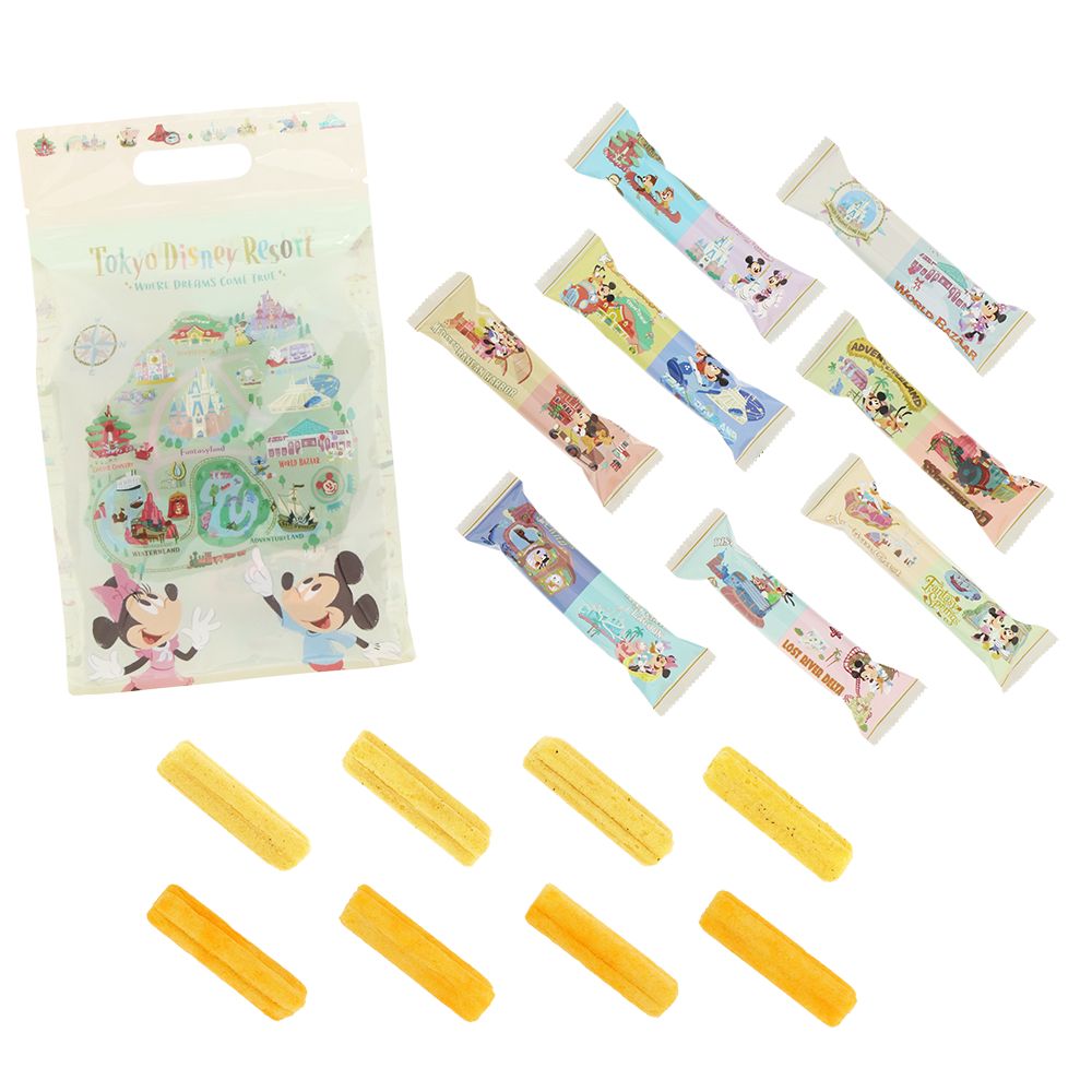 ミッキーたちが楽しそうに巡っているパークのマップやアイコンをモチーフにしたコーンスナック。