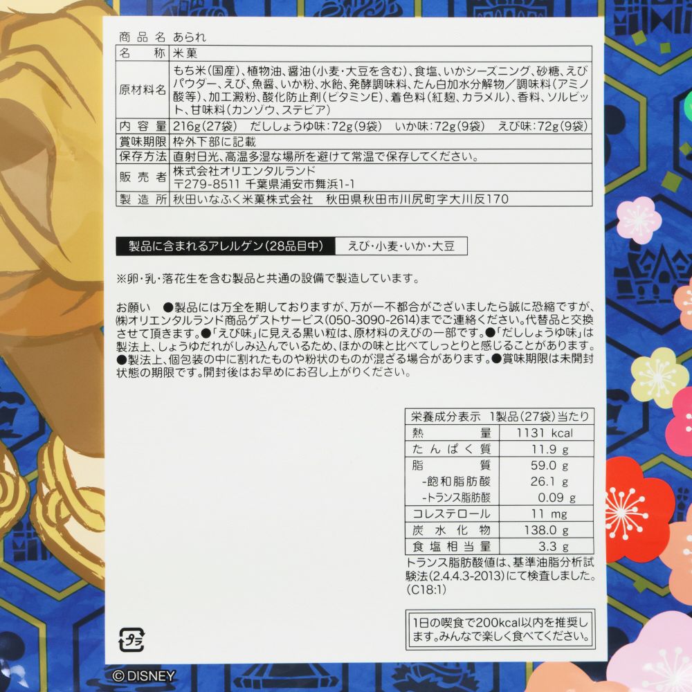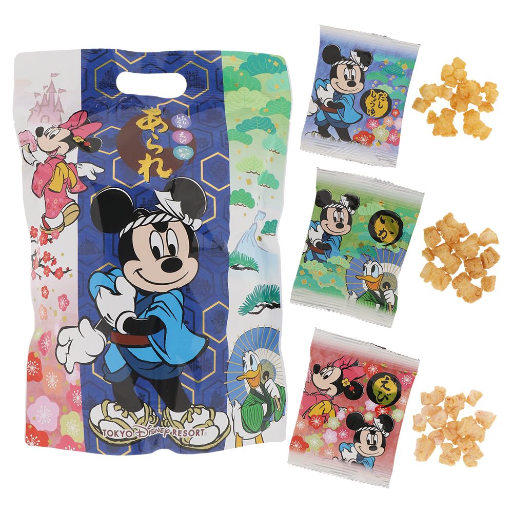 パッケージに和装のミッキーやミニーがデザインされた、アソートのあられ。
