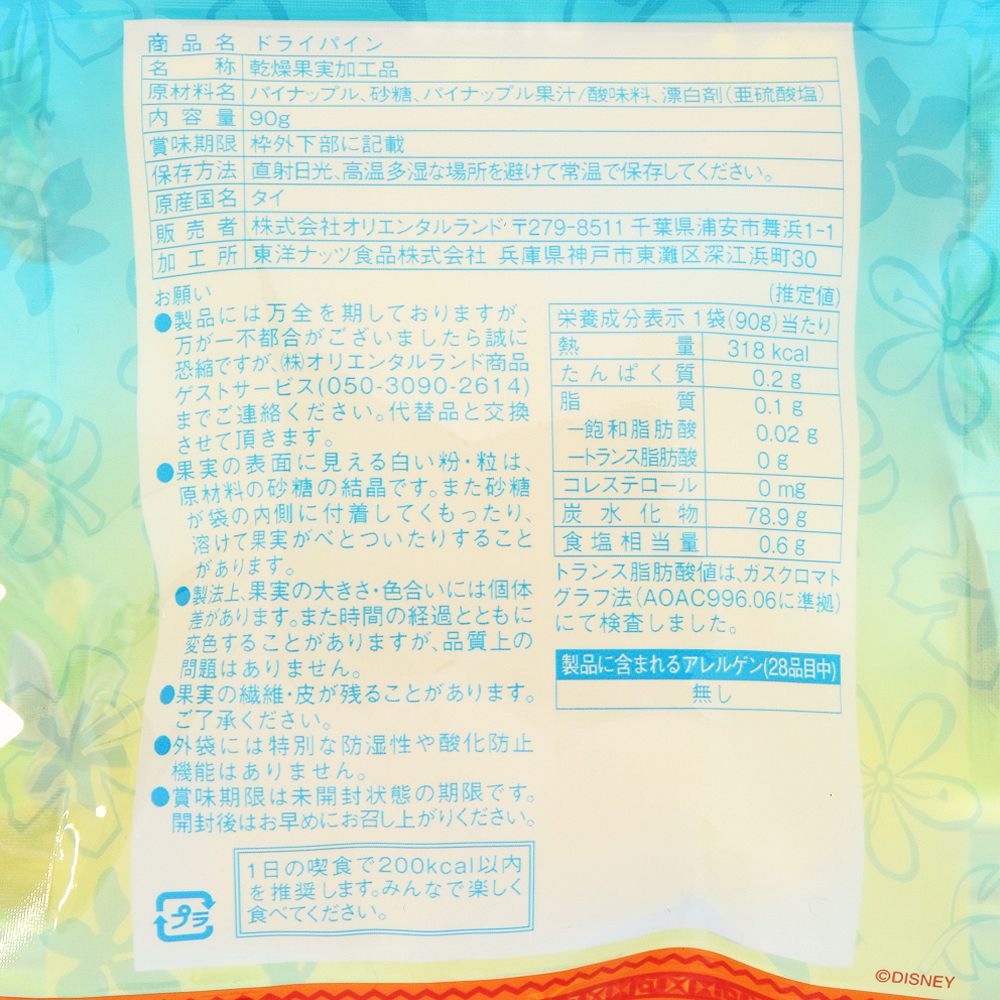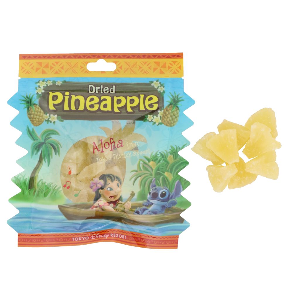 映画『リロ&スティッチ』をイメージしたデザインのパッケージに入った、ドライフルーツパイン。