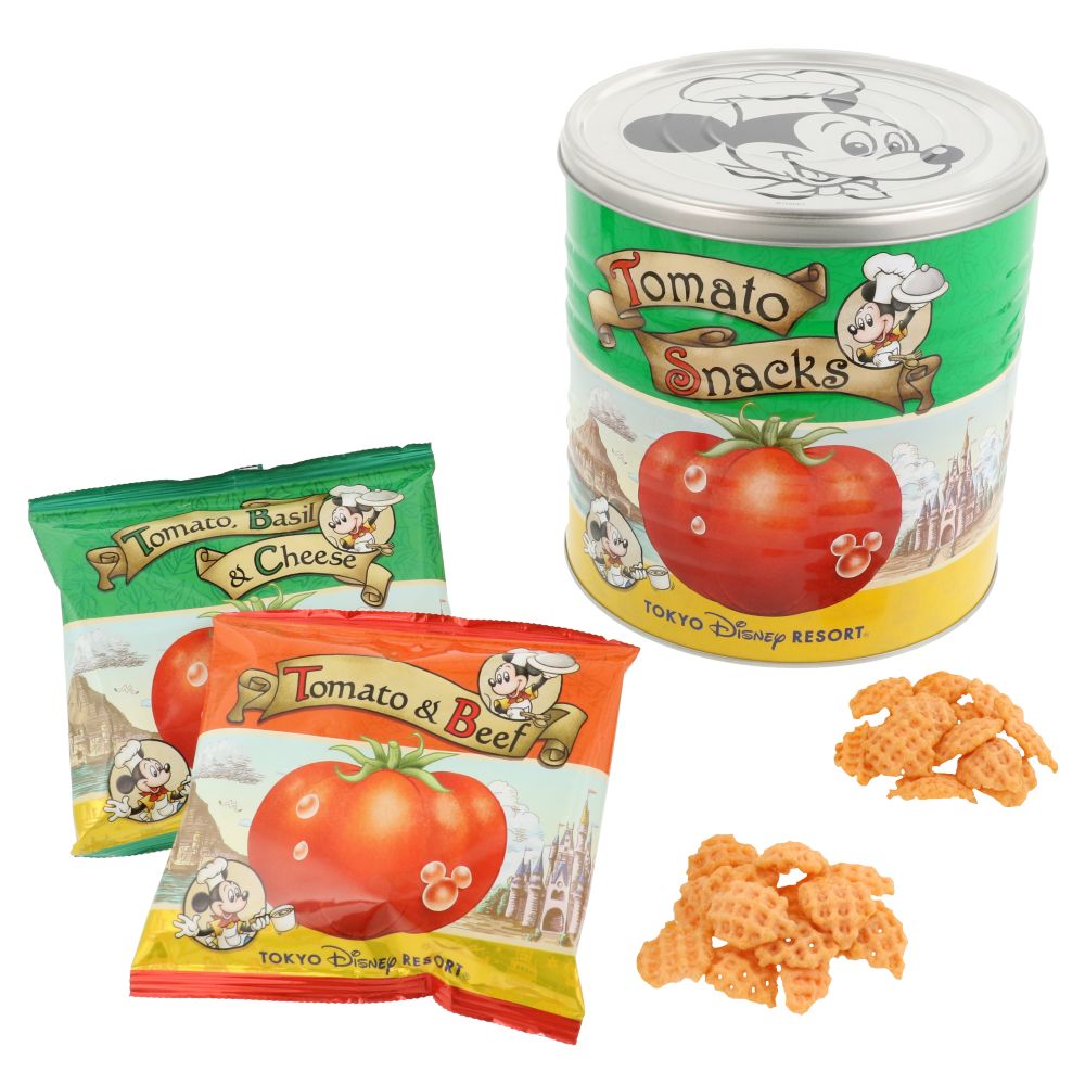 大きくみずみずしいトマトとミッキーがアンティーク風にデザインされたトマトスナック。
