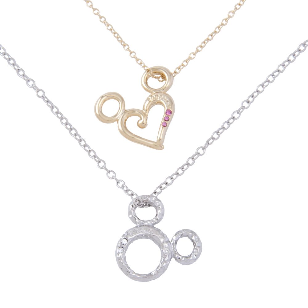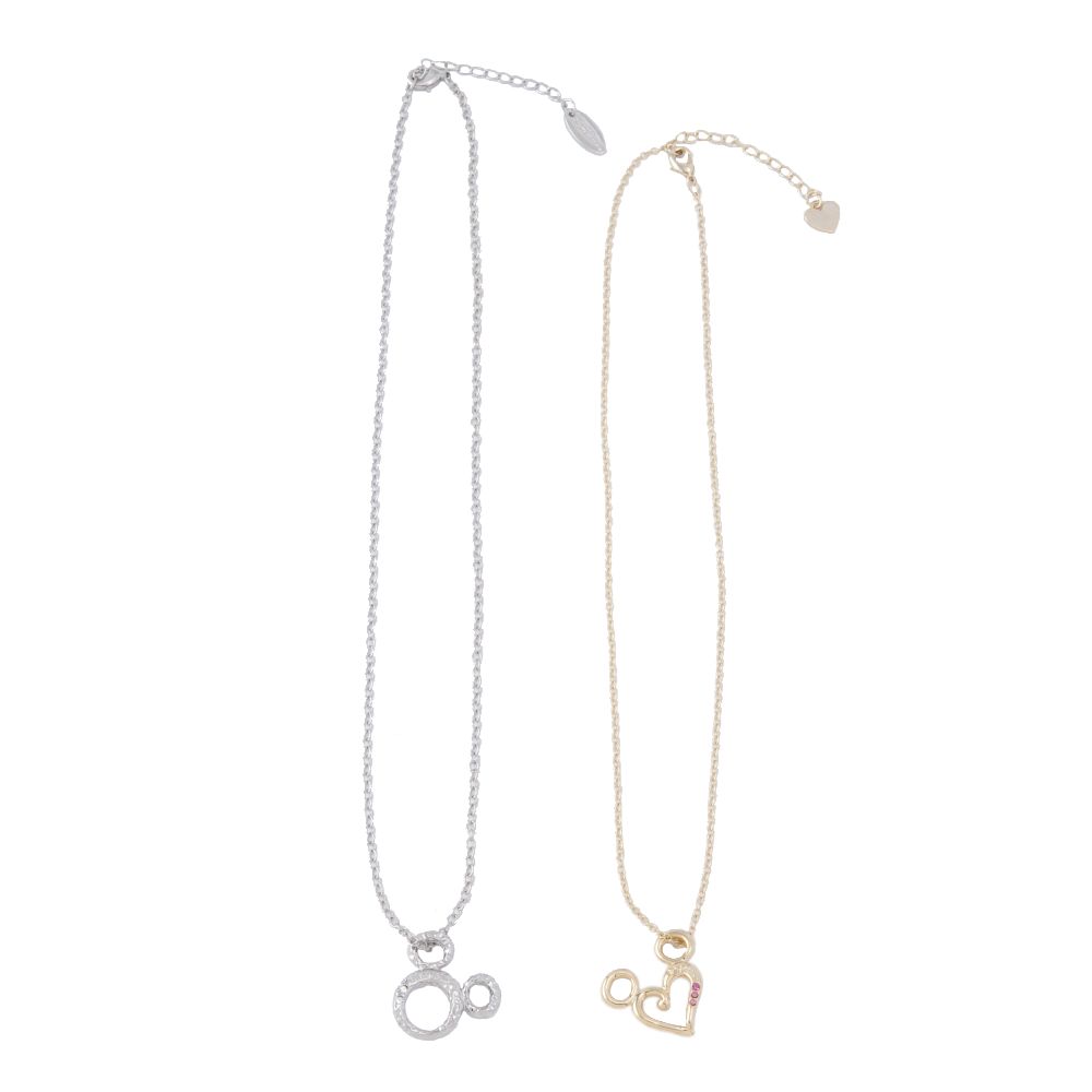 ミッキーシェイプをモチーフにしたシルバーとゴールドのペアネックレスです。