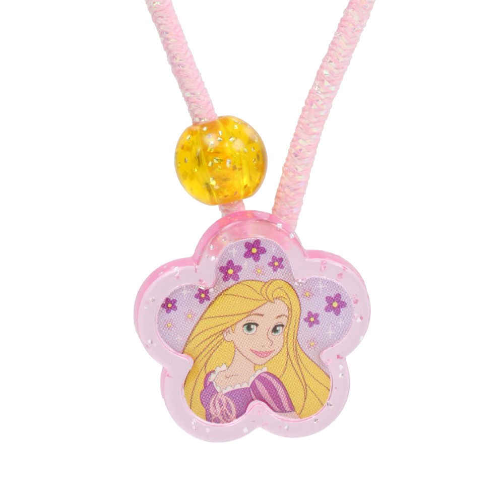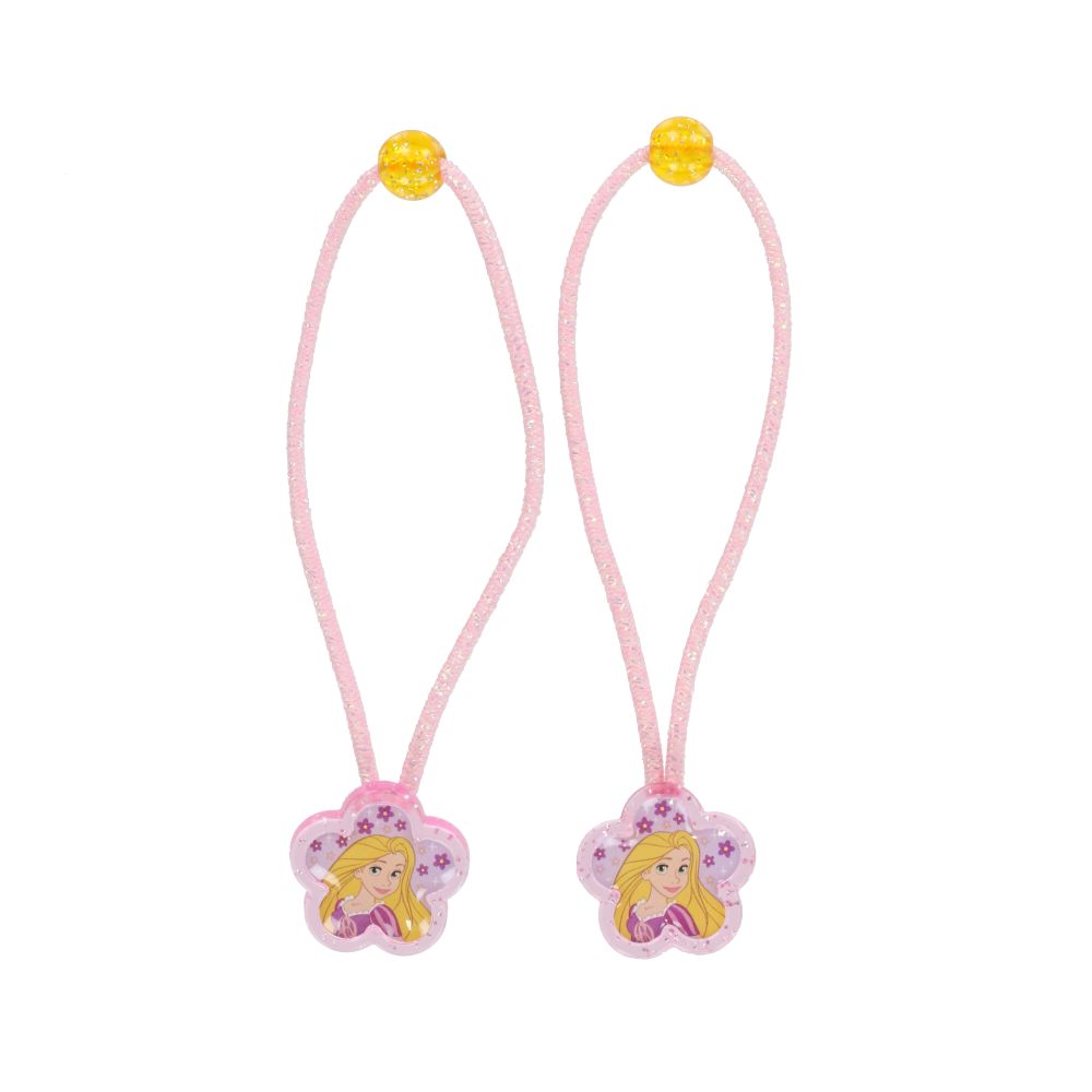 花の形のパーツにはラプンツェルのイラストが描かれていて、髪の毛を結ぶとアクセントになります。