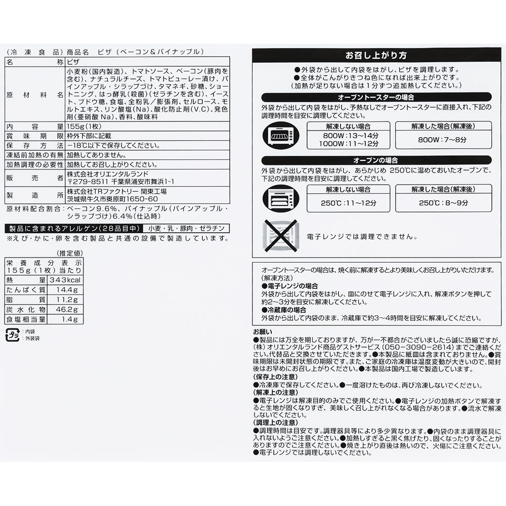 わくわく楽しい冷凍食品をお届けする”東京ディズニーリゾート・フローズンセレクション”。パークレストランのメニュー「ベーコンとパイナップルのピザ」をイメージした冷凍食品です。