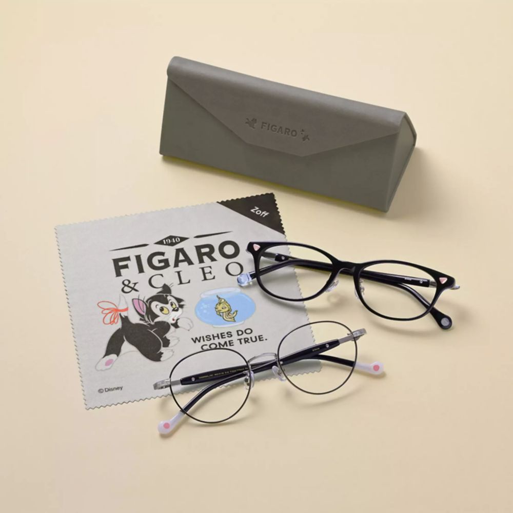 白黒のフィガロをイメージし、メガネ全体をモノトーンな色合いにしました。