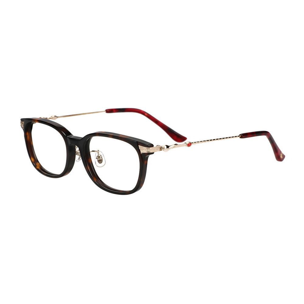 ゴールドカラーのテンプルにはコブラを立体的に表現し、七宝でできた宝石がアクセント。テンプルエンドの箔押しした黄金色のスカラベが魅力的です。