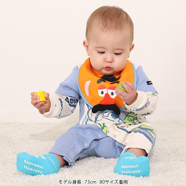 【ベビードール】ポテトヘッド 飛び出しスタイ 4605 / 赤ちゃん 出産祝い 贈り物 プレゼント ベビー用品 立体モチーフ スナップボタン付(2段階調節可) リバーシブル仕様 ポリウレタンコーティング加工
