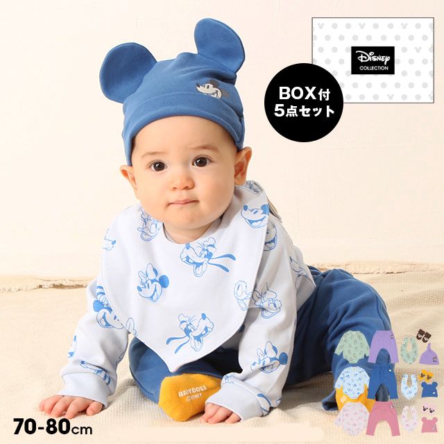 ベビーサイズ 男の子 女の子 こども 子ども服 赤ちゃん あかちゃん 新生児 出産祝い 贈り物 プレゼント ギフト ベビー服 ベビー用品 ギフトボックス付き ベビーつなぎ 長袖 フード無し 雑貨 ベビーハット キャラクター ミッキー ミニードナルド プルート グーフィ 七人のこびと 総柄 ベーシック カジュアル シンプル クール かっこいい おしゃれ 可愛い かわいい 春夏秋冬