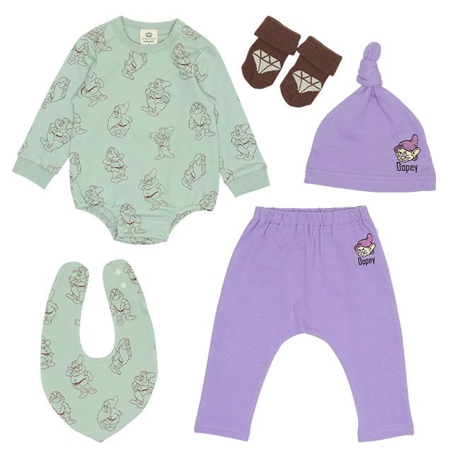 【ベビードール】七人のこびと ギフトBOX付き 5点ギフトセット 7186B 【DY】 / 70-80cm ベビーサイズ 赤ちゃん 出産祝い 贈り物 プレゼント ベビー服 ロンパース モンキーパンツ スタイ(リバーシブル仕様) ソックス 帽子