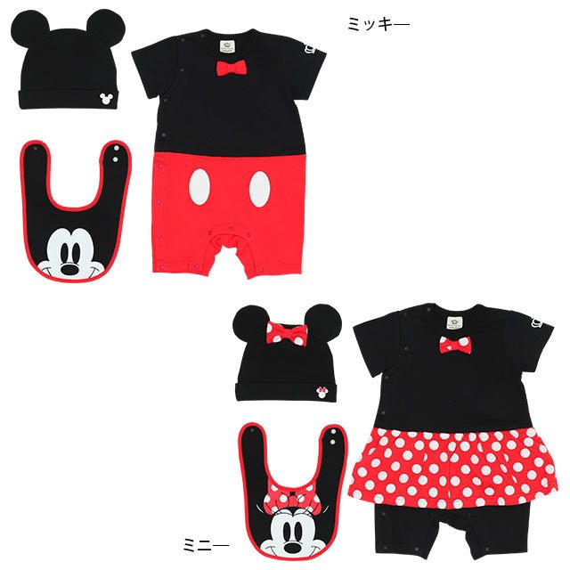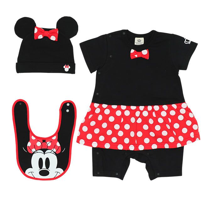 【ベビードール】ミニー ギフトBOX付き 3点ギフトセット7869B 【DY】 / 70-80cm ベビーサイズ 赤ちゃん 出産祝い 贈り物 プレゼント ベビー服 ロンパース、スタイ、耳付き帽子 肩紐長さ調節可(2段階)