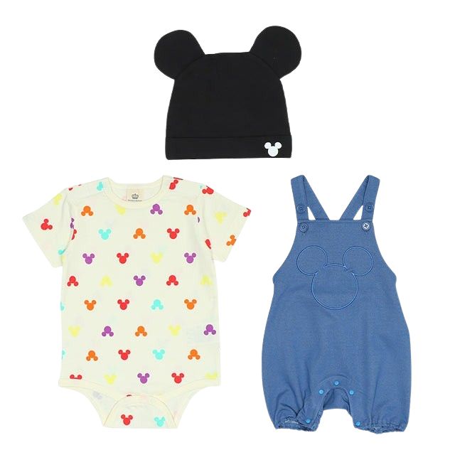 半袖ボディスーツ・サロペット・ミッキーとミニーの耳付き帽子を合わせたお得な3点セット♪