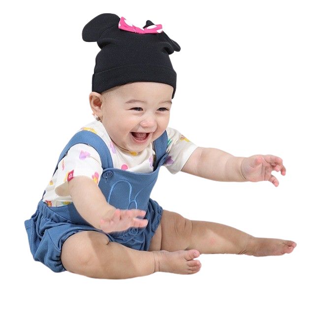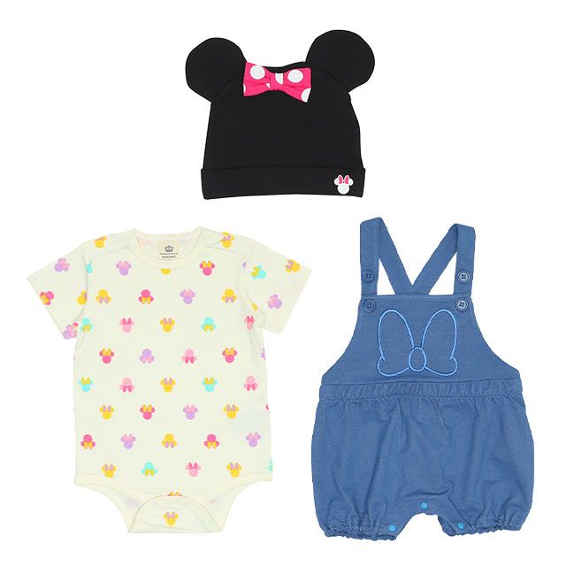 半袖ボディスーツ・サロペット・ミッキーとミニーの耳付き帽子を合わせたお得な3点セット♪