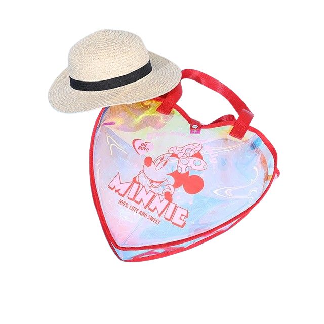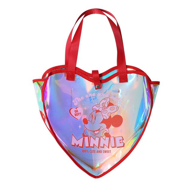 キュートなハートの形とキラキラと輝くオーロラフィルムが存在感抜群のクリアバッグ♪