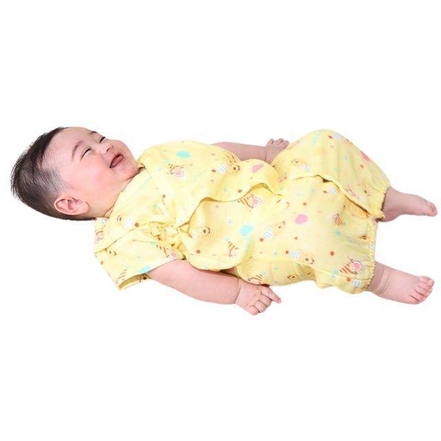 おしゃれな甚平デザインは紐で留められるので、サイズ調整が可能だから成長に合わせて長く着られる★