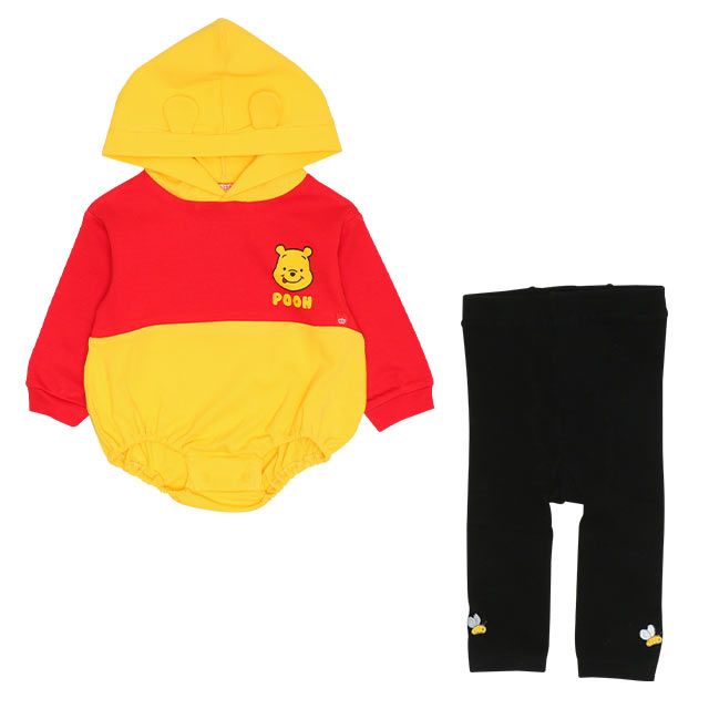 【ベビードール】プー ギフトBOX付き なりきる2点ギフトセット 9802B 【DY】 / 70-80cm ベビーサイズ 赤ちゃん 出産祝い 贈り物 プレゼント ベビー服 長袖 フード付き ロンパース ボトムス タイツ コーデセット 仮装 コスチューム コスプレ