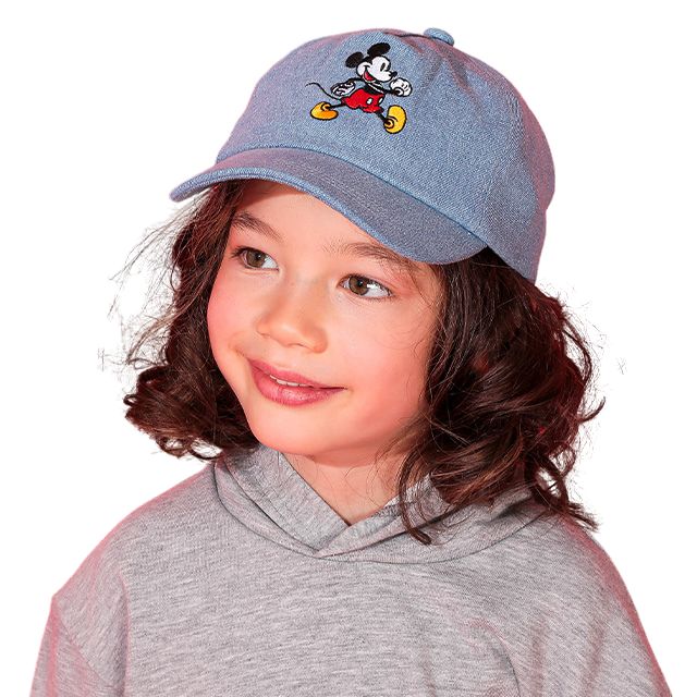 【ベビードール】ミッキー デニムキャップ 0192 / キッズ 雑貨 帽子 ぼうし 日よけ バックルでサイズ調整可 軽量 刺繍