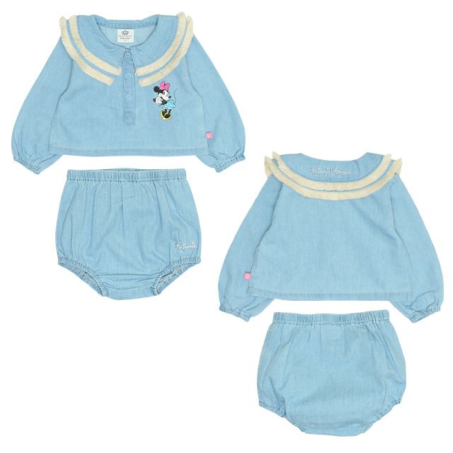 【ベビードール】ミニー デニムベビーセットアップ 0298B / 70-80cm 赤ちゃん リンクコーデ ペアルック 出産祝い 贈り物 プレゼント 綿100% フリンジ襟