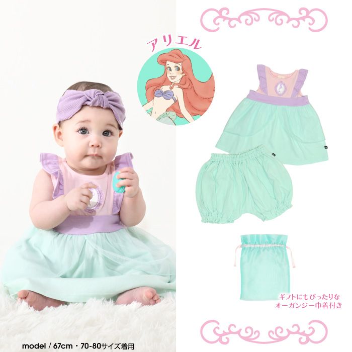 ベビー ベビーサイズ あかちゃん 赤ちゃん 出産祝い お祝い 贈り物 お得 女の子 こども 子ども服 ボトムス ディズニー ディズニープリンセス お姫様 袖なし 人気キャラクターデザイン アリエル ラプンツェル アリス リトルマーメイド 不思議の国のアリス シンプル プリンセスワンピース プリンセスドレス ブルマ