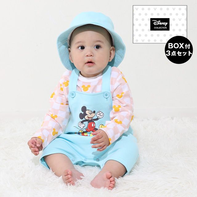 【ベビードール】ミッキー ギフトBOX付き 3点ギフトセット 0636B 【DY】 / 70-80cm ベビーサイズ 赤ちゃん 出産祝い 贈り物 プレゼント ベビー服 長袖 ボディスーツ サロペット 帽子 ベビーハット トータルコーディネート 綿100%
