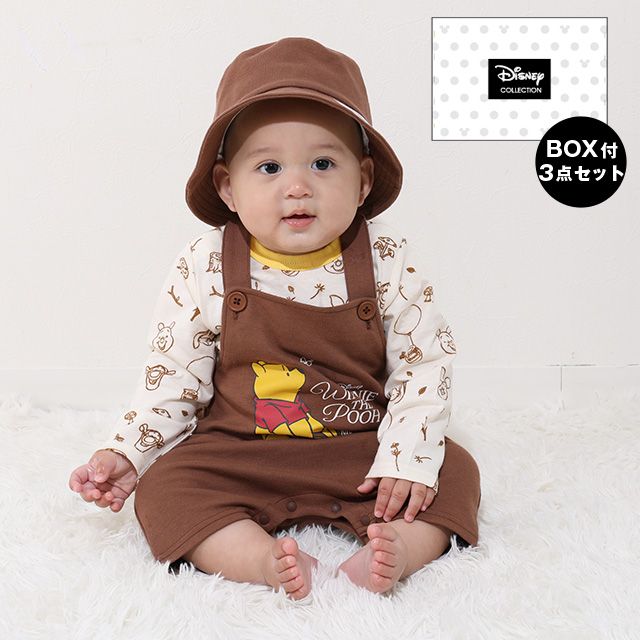 【ベビードール】プー ギフトBOX付き 3点ギフトセット 0636B 【DY】 / 70-80cm ベビーサイズ 赤ちゃん 出産祝い 贈り物 プレゼント ベビー服 長袖 ボディスーツ サロペット 帽子 ベビーハット トータルコーディネート 綿100%