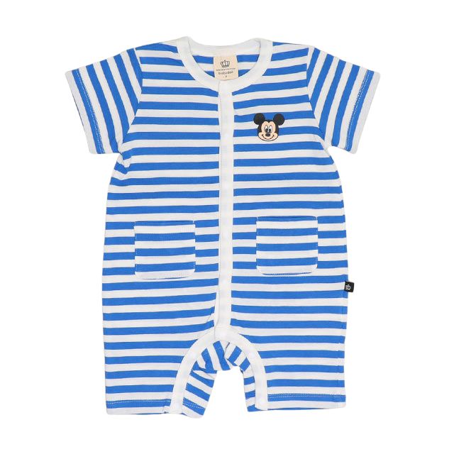 【ベビードール】ミッキー おしりキャラクターロンパース 1208B / 70-80cm ベビーサイズ 赤ちゃん 出産祝い 贈り物 プレゼント ベビー服 半袖 ボーダー柄 アップリケ 天竺素材