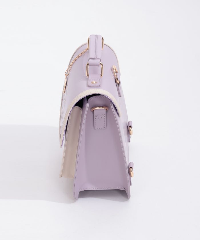 上品な色合いが目を惹く、配色デザインのサッチェルバッグです。