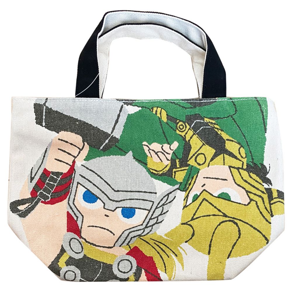 MARVELから、おしゃれなマチ付バッグが入荷。グリヒルが描くソーとロキのファスナー付マチ付バッグです。ランチバッグやサブバッグとしてはもちろん、近所へちょっとお出かけする際に気軽に持って行けるちょうどよい大きさのバッグです。底マチが約10cmもあるので、たくさんの荷物を収納可能。