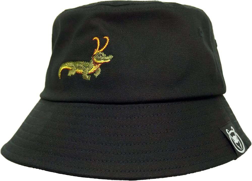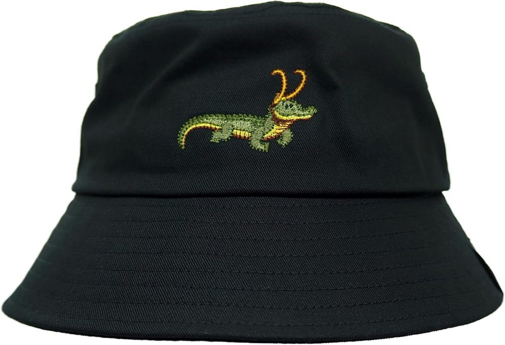 『Disney+(ディズニープラス)』のロキに登場するワニが刺繍されたバケットハット。バケツをひっくりかえしたようなシルエットが特徴のハット。アウトドア、カジュアル、モード系など、レディスファッションの外しアイテムとして人気です。