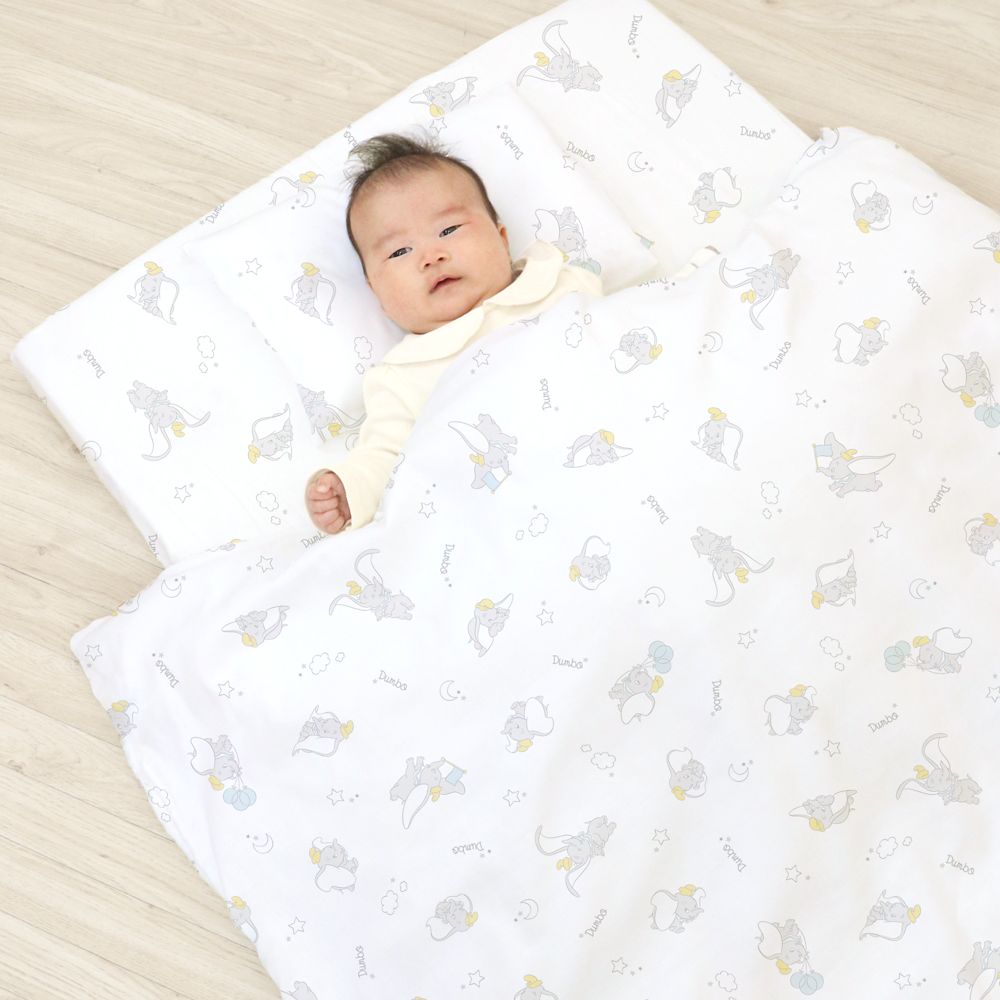 また、ダンボ柄限定で「エアーフロー」という加工が施されています。仕上がった生地に熱風を当て回転させることにより生地が揉まれて、糸にふくらみが出ることでより柔らかい風合いとエアリーな肌ざわりになります。日本の工場で生産された、デザイン~風合いまでこだわった生地を使用しています。