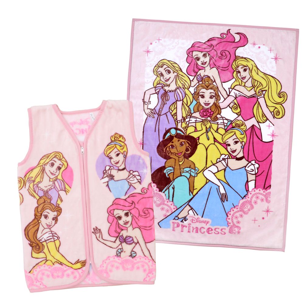 ☆ラプンツェル、アリエル、シンデレラ、ベル、オーロラ姫、ジャスミン、6人の「ディズニープリンセス」が描かれた華やかなデザイン。ニューマイヤー素材の毛布とスリーパーのお得なセット販売です。