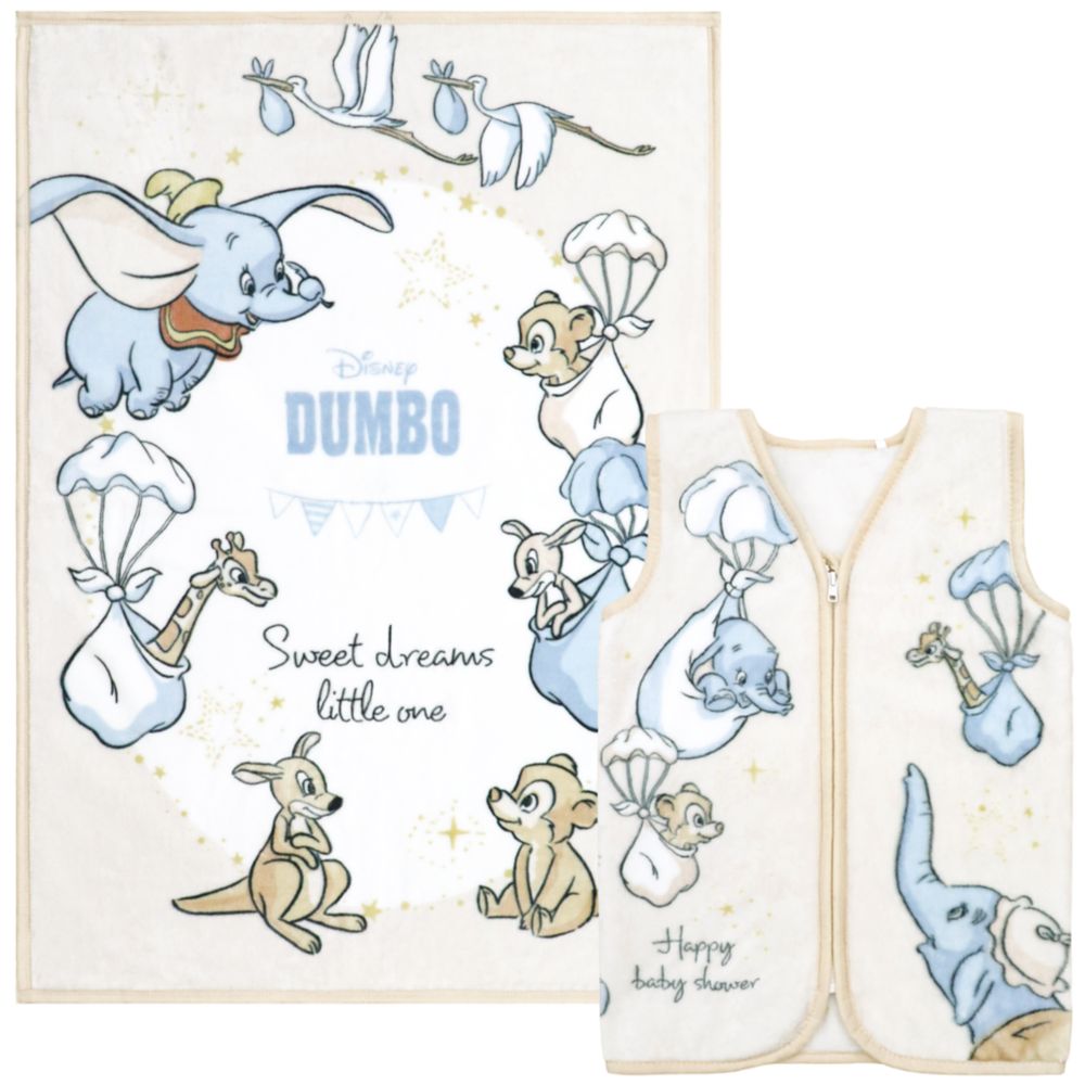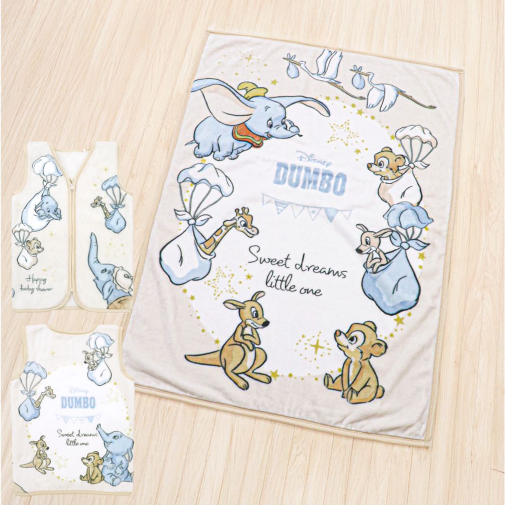 ☆大きな耳の赤ちゃんゾウ、ダンボが愛らしいデザイン。お揃いがうれしい毛布とスリーパーの2点セットです。