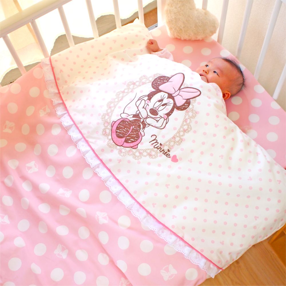 ☆掛布団カバーは、大きなリボンがキュートなミニーのアップリケ刺繍で仕上げました。ピンク色のリボンに純白のレースが乙女心をくすぐります。総柄プリントは、ピンク地とホワイト地の2デザイン。ピンク地はホワイトカラーの大きめドットとリボン入りでリボンには MINNIE MOUSE のロゴ入り。ホワイト地はピンクカラーのドットとミッキーアイコンが隠れているキュートなデザイン。枕カバー、丸型枕もキュートなピンク地の総柄プリント。さらに、フィッティングシーツはピンク地とホワイト地の2枚セットなので洗い替えにも便利です。