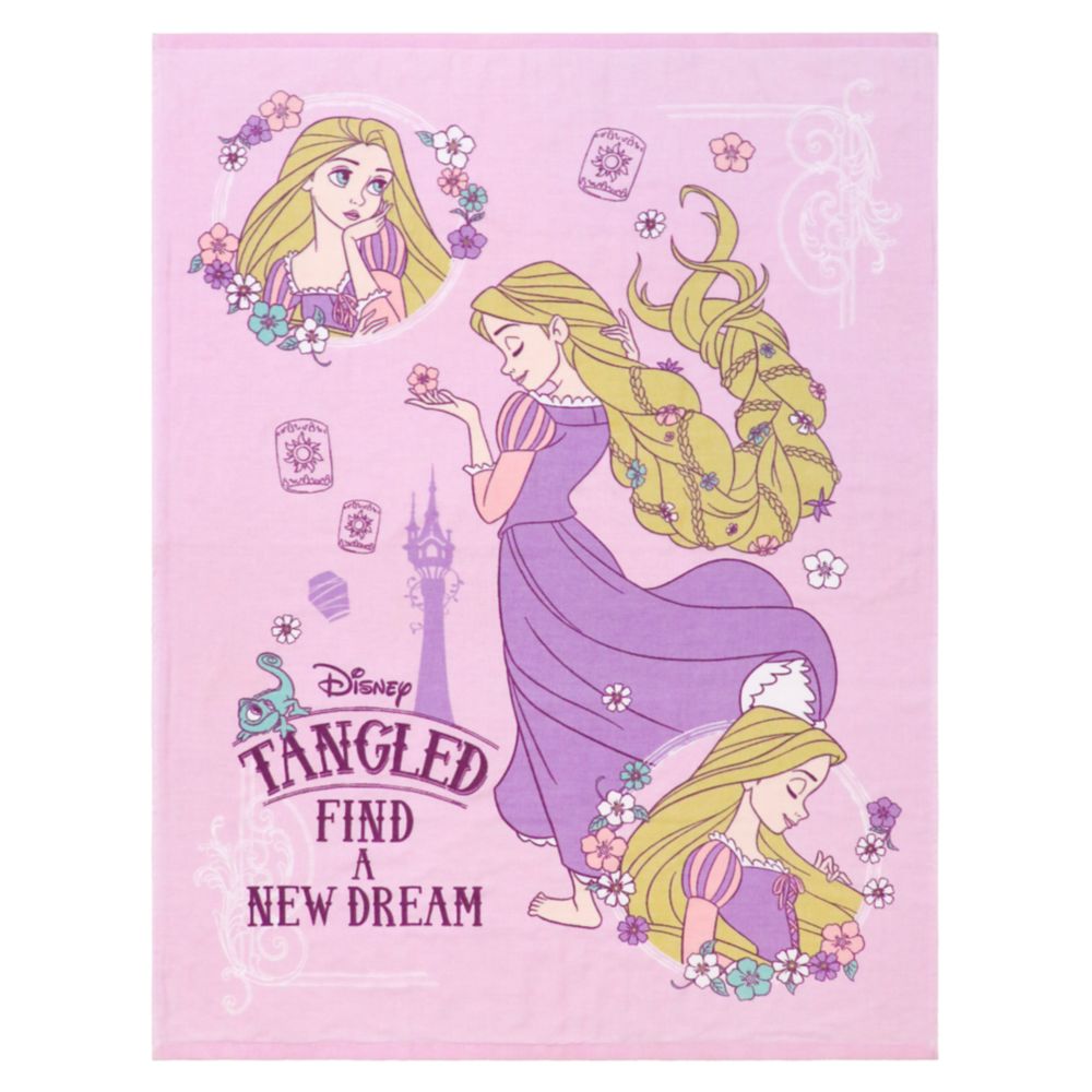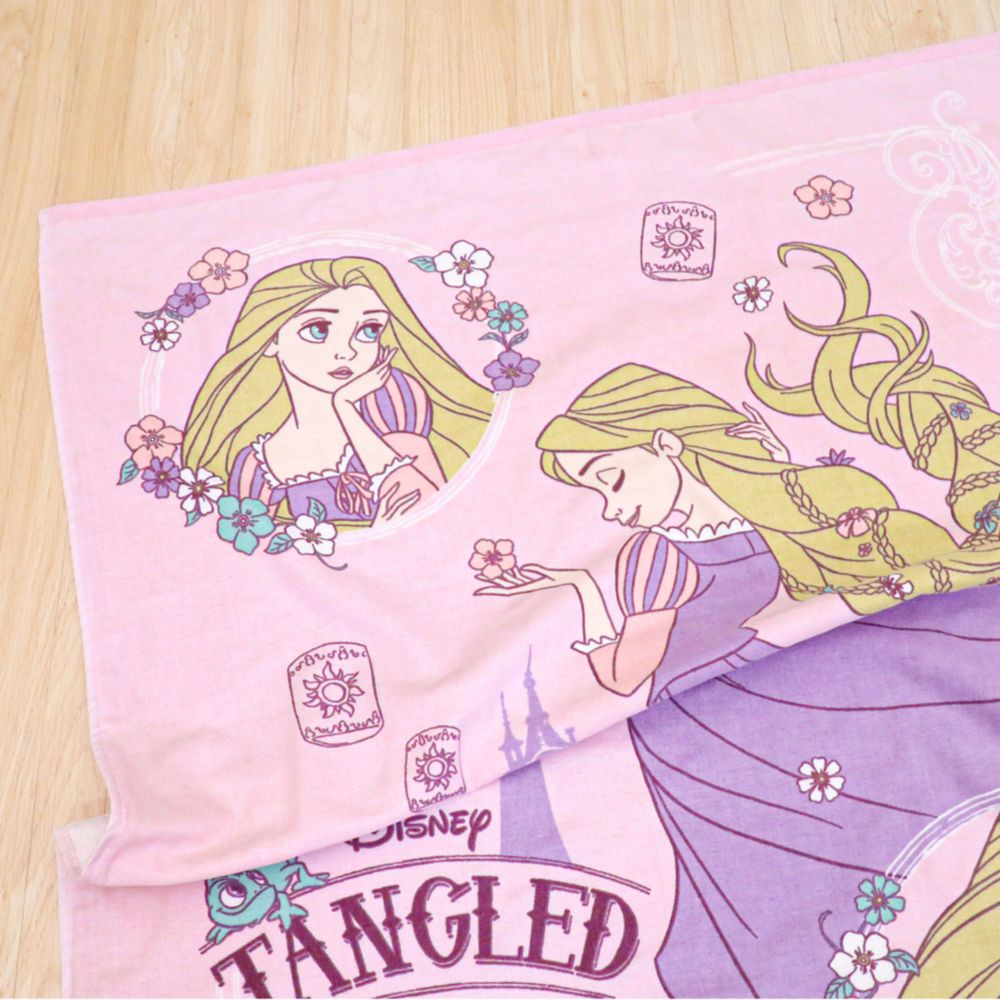 ☆『塔の上のラプンツェル』のデザイン。ラプンツェルの愛らしい笑顔に癒されるタオルケットです。お友達のパスカルも一緒♪