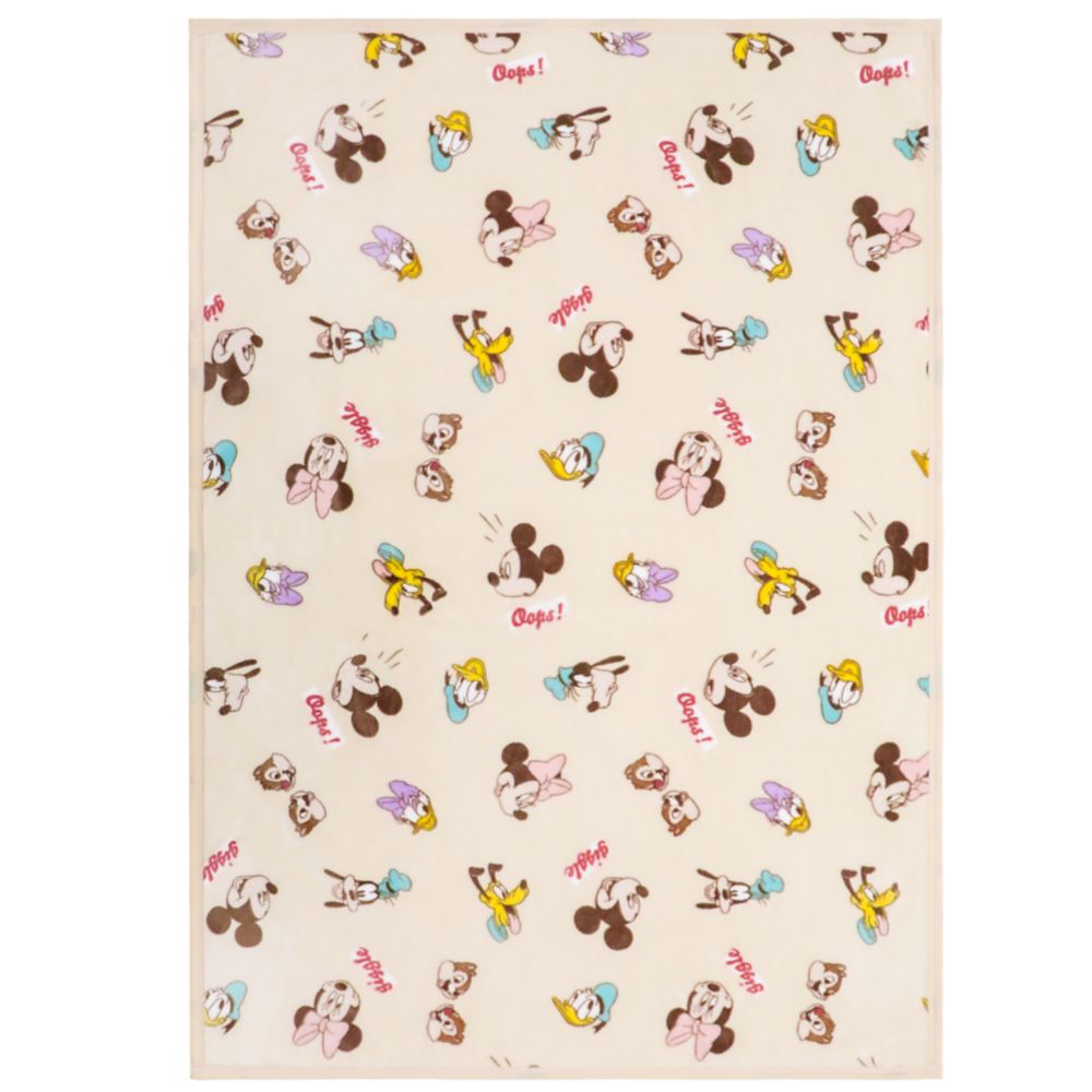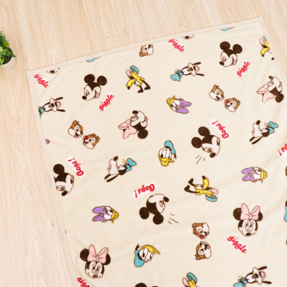 ☆ミッキーマウス、ミニーマウス、ドナルドダック、デイジーダック、グーフィー、プルート、チップ&デールが描かれた元気いっぱい笑顔あふれるデザインのニューマイヤー毛布。