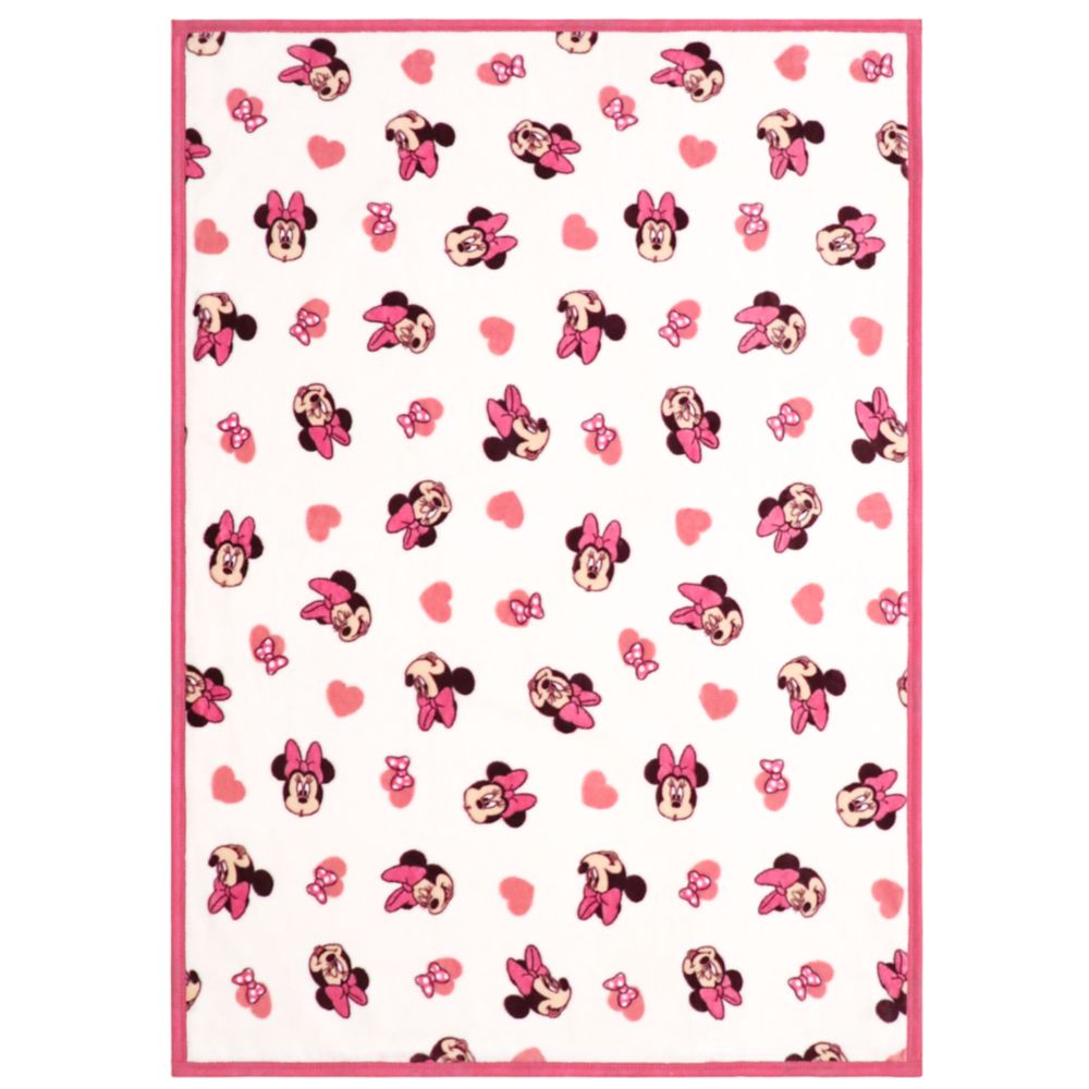 ☆ミニーの楽しい表情がかわいいピンク×ホワイトのキュートなデザインのニューマイヤー毛布。