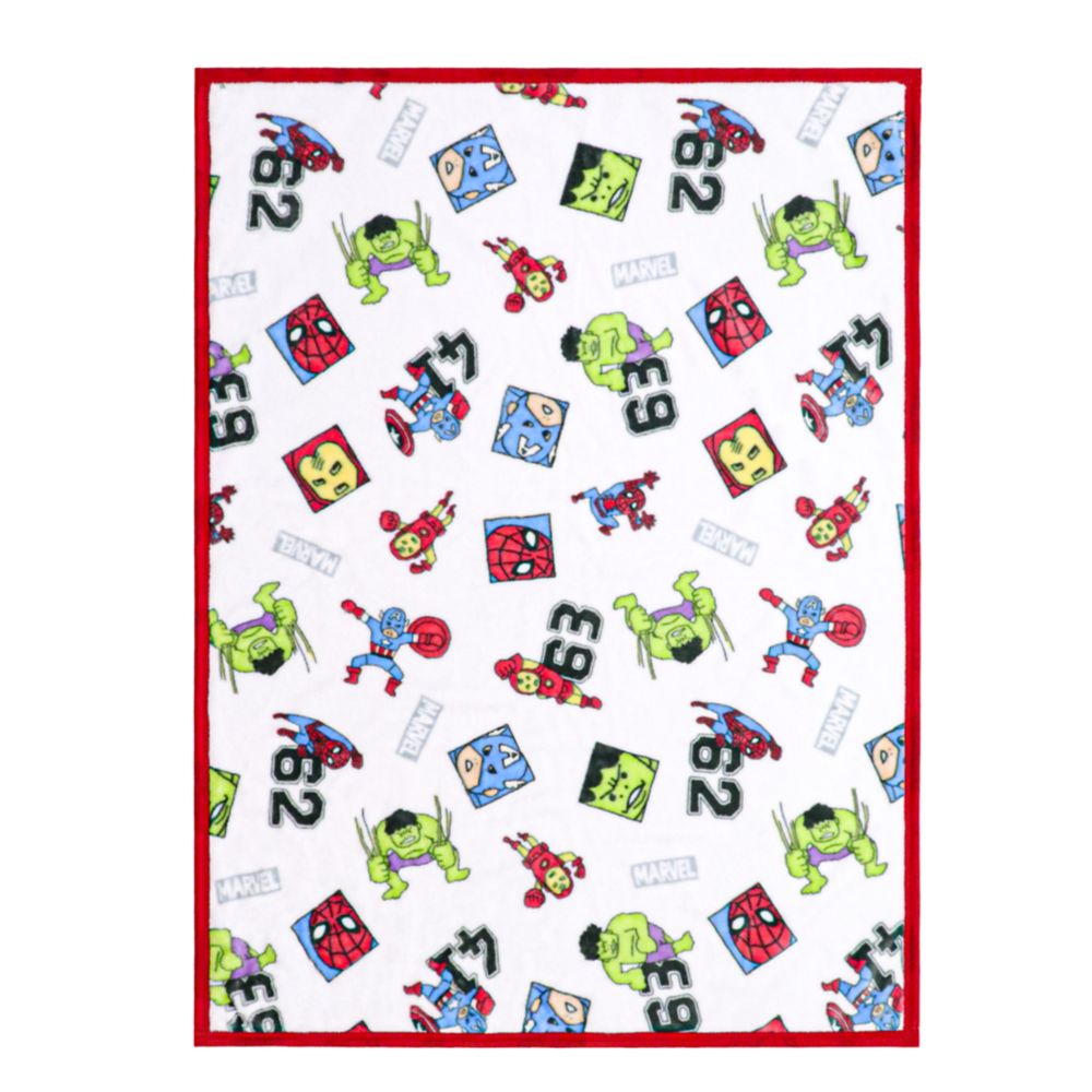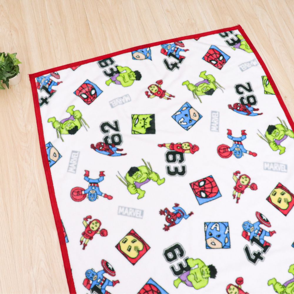 スパイダーマン、アイアンマン、キャプテン・アメリカ、ハルクが描かれたニューマイヤー毛布。