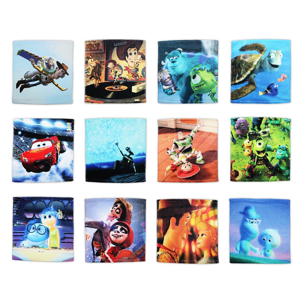 筒に入ったピクサー映画作品の貴重な1シーンのハンドタオル。どれが出るかは開けてみてのお楽しみ♪どれも素敵で思い出に残るシーンばかりですね!※種類は選べません。