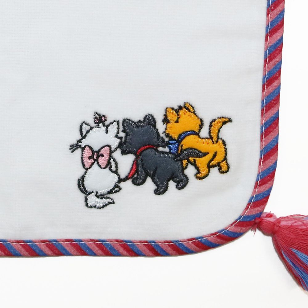 かわいい後ろ姿が刺繍された、タッセル付きのハンドタオル。
